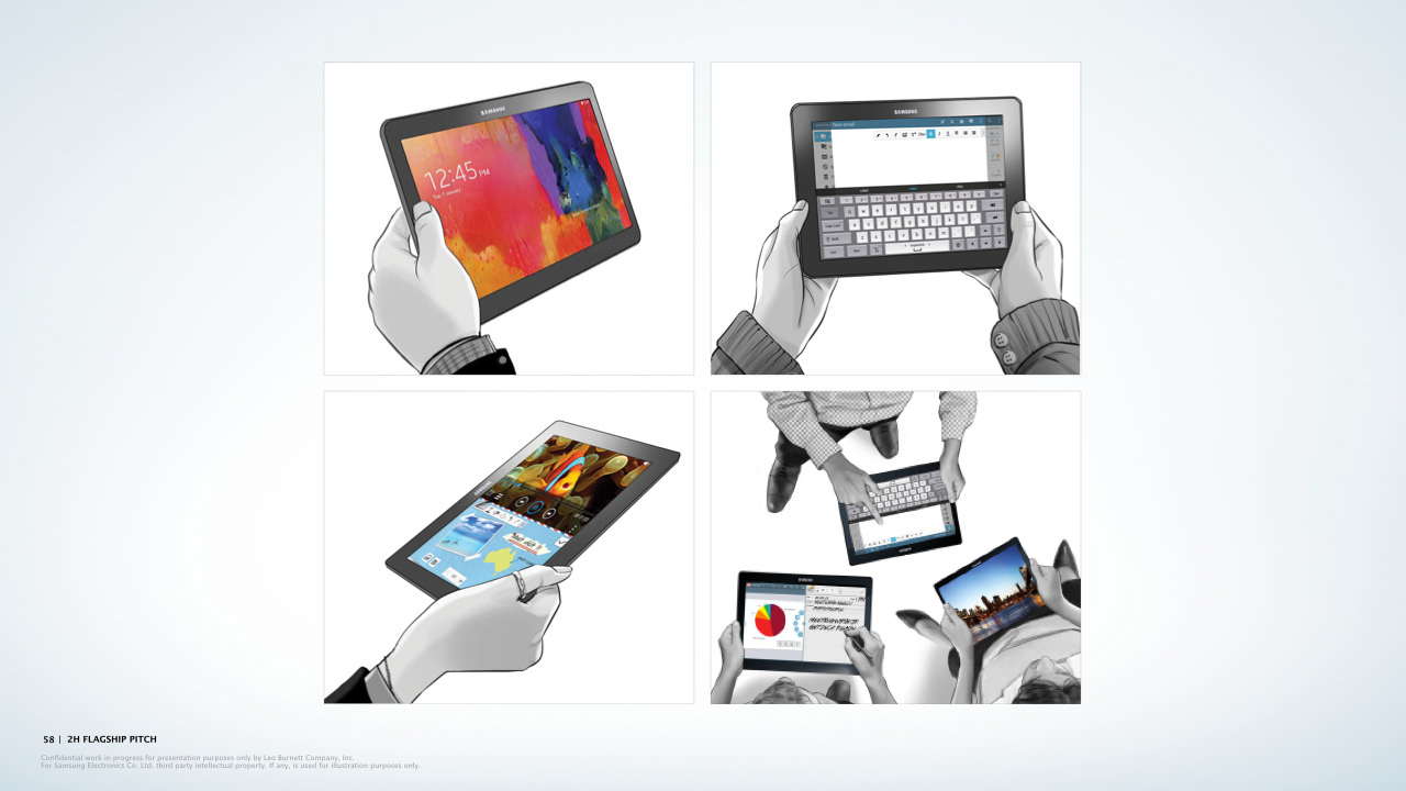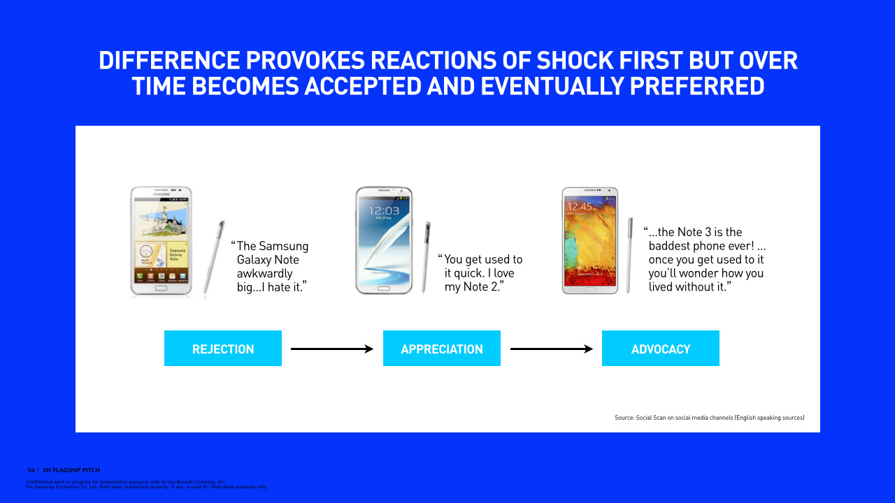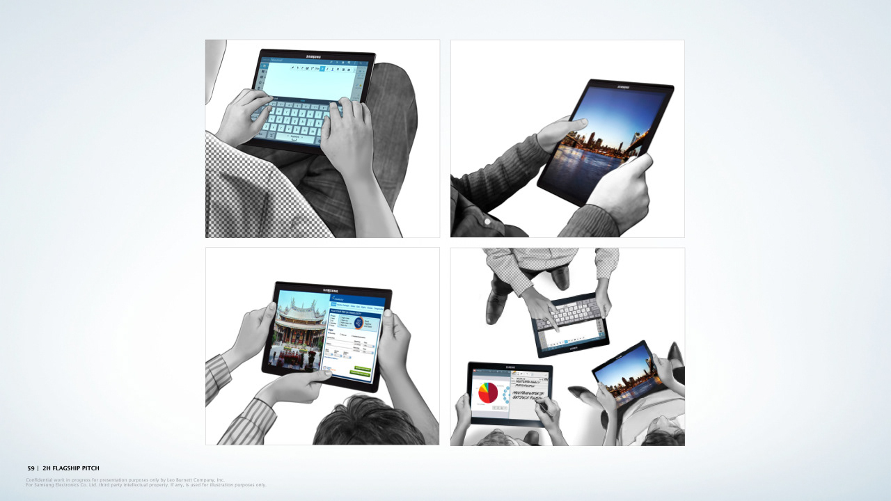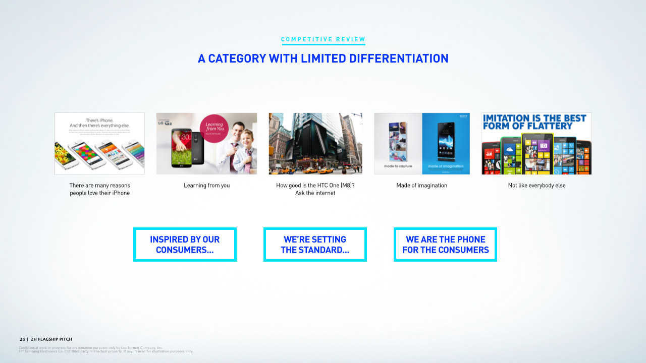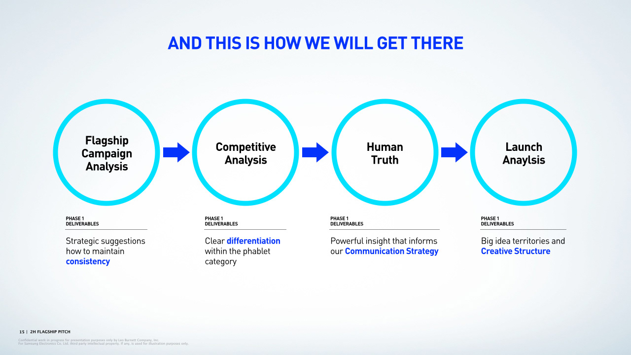 Presentation deck page examples for Leo Burnett.